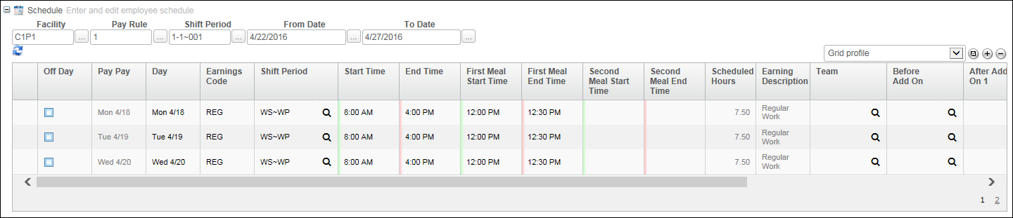 derived from the Facility, Pay Rule, and Work Shift/Period.