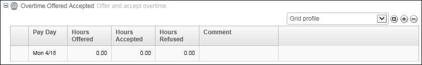 | Hours Accepted | The hours accepted, which may be computed based on the Overtime hours worked or added in advance. |