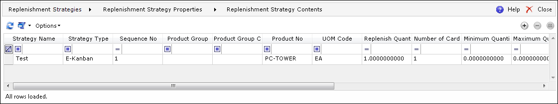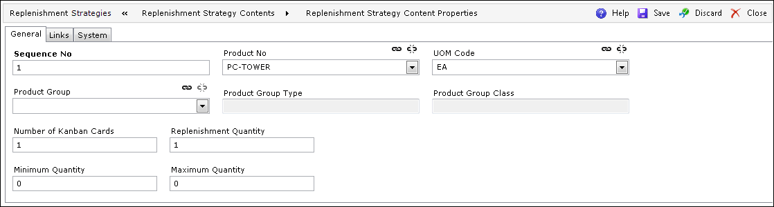 | Minimum Quantity | The minimum quantity for the Replenishment Strategy Content. |