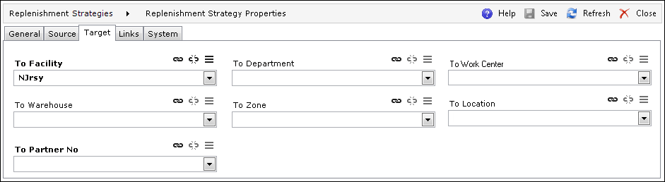 The Target tab describes the location to which the product is taken.